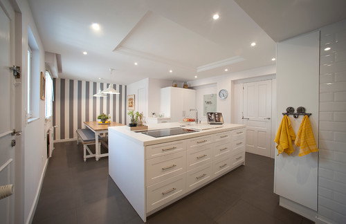 Esta cocina de estilo nórdico usa como color principal el blanco. La mayoría del material es madera pintada de blanco, lo que le da un aspecto muy actual, luminoso y además, totalmente a la moda.